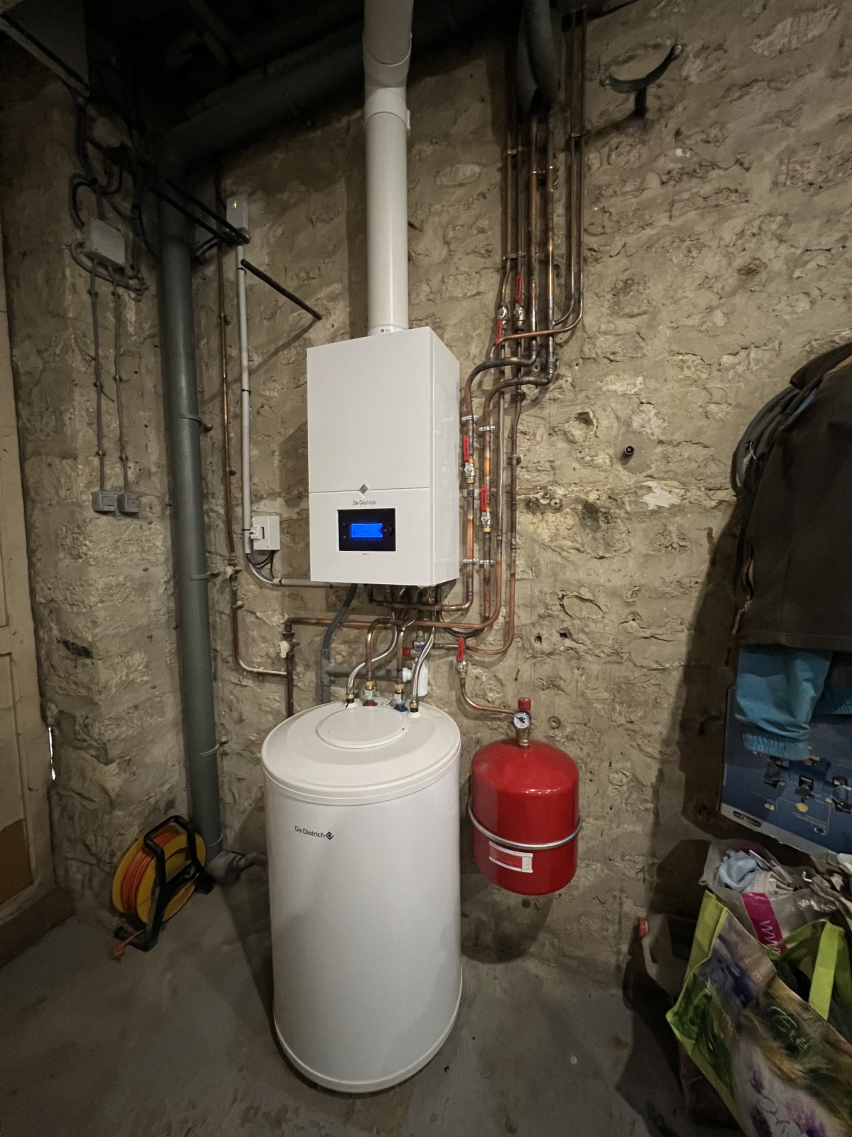 Installation d’une chaudière gaz condensation compatible hydrogène en remplacement d’une chaudière gaz existante avec rénovation du réseau et nettoyage des radiateurs par machine mécanique