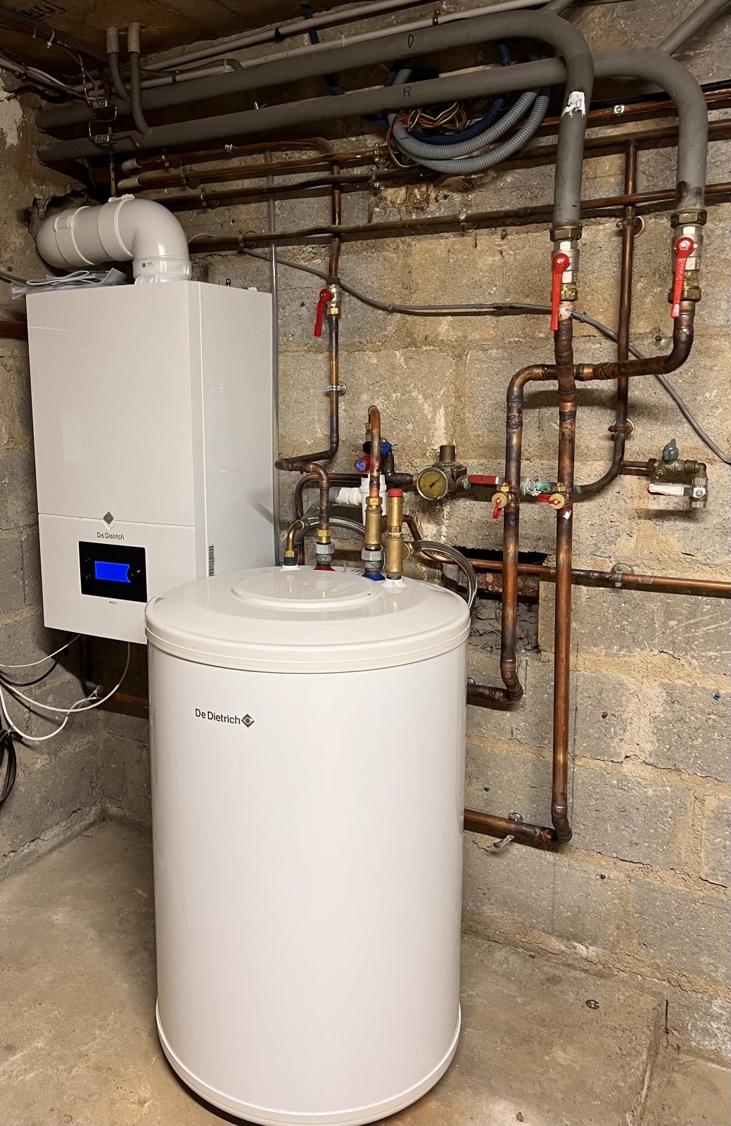 Remplacement d’une chaudière fioul par une. Chaudière gaz à condensation THPE avec un système de production d’eau chaude par stockage de ballon ainsi que désembouage de l’installation pour une meilleure diffusion et un meilleur rendement