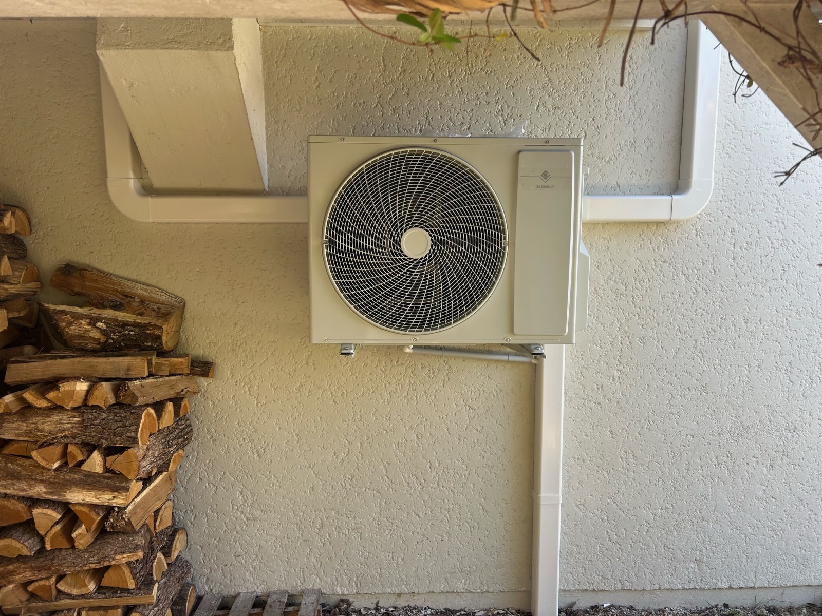 L’ensemble des appareils intérieur et du groupe extérieur avec passage des liaisons Frigo, de manière esthétique et discrète